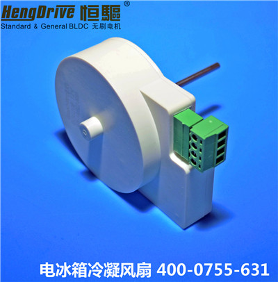 HJC黄金城电机推出白色款冰箱冷凝器专用无刷风机:三相外转子无刷马达,直流12V供电,1800转,功率2W左右,超静音,低能耗,非常符合白色家电的环保新主张,而且拥有很长寿命,能满足冰箱长期工作的特性。
