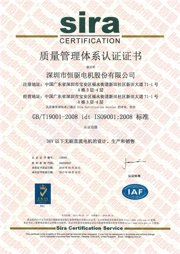 深圳市HJC黄金城电机股份有限公司2016年最新环境管理体系与质量管理体系已经完成相关审核并获得最新证书,请查阅!