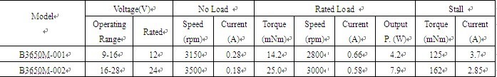 B3650M直径是36mm,长度是50mm,以下为该产品的规格表: