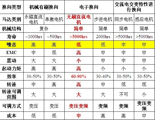 最近,遇到很多国外客户在问,无刷直流电机与其他电机在寿命、噪音、效率等方面具体有什么不同。下面小编做了一个表格供大家参考。
