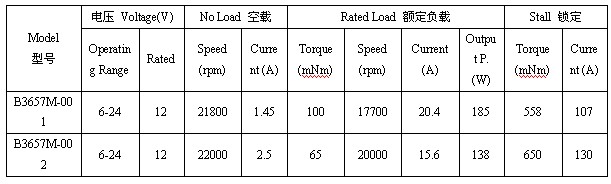 HJC黄金城无刷电机型号:B2430M、B3640M、B3657M