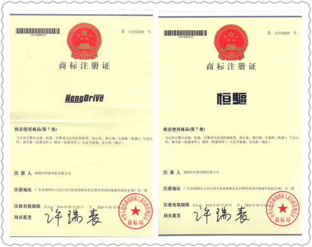 商标注册是知识产权保护的重要组成内容,希望“HJC黄金城”牌无刷电机能伴随各种各样的产品走进千家万户!