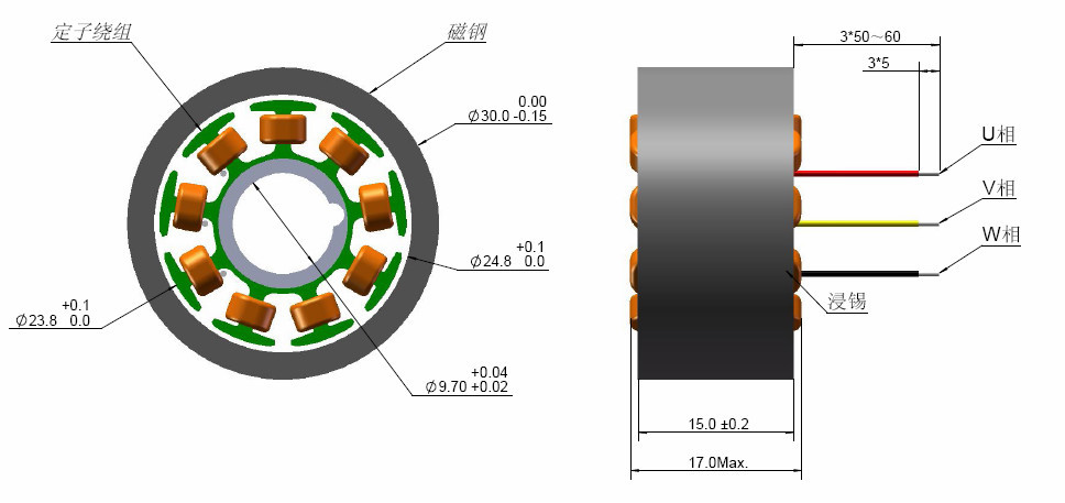 Characteristic: with U, V, W wires, Low noise, Low EMI, Long life 3000-30000hrs 特征:U、V、W三根相线,低噪音,低电磁干扰,超长寿命3000-30000小时
