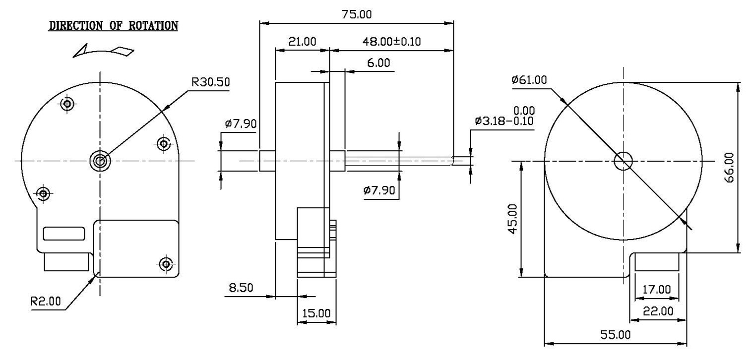 Notice: Data in this typical specification sheet are for other certain customer. Voltage, rated torque, speed, current, power and shaft extension feature & dimension can be changed to meet customer specific requirement. 注意:上述规格仅针对特定客户,电压、扭矩、转速、电流、功率、输出轴的特征和尺寸等都可以按照客户的特殊要求进行调整。 |