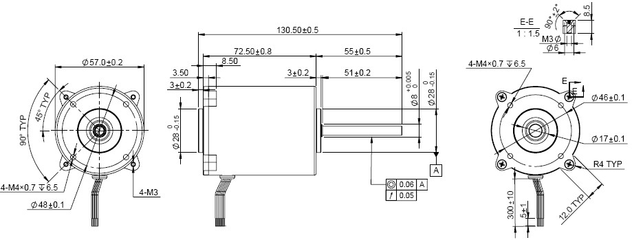 Notice: Data in this typical specification sheet are for other certain customer. Voltage, rated torque, speed, current, power and shaft extension feature & dimension can be changed to meet customer specific requirement. 注意:上述规格仅针对特定客户,电压、扭矩、转速、电流、功率、输出轴的特征和尺寸等都可以按照客户的特殊要求进行调整。 |