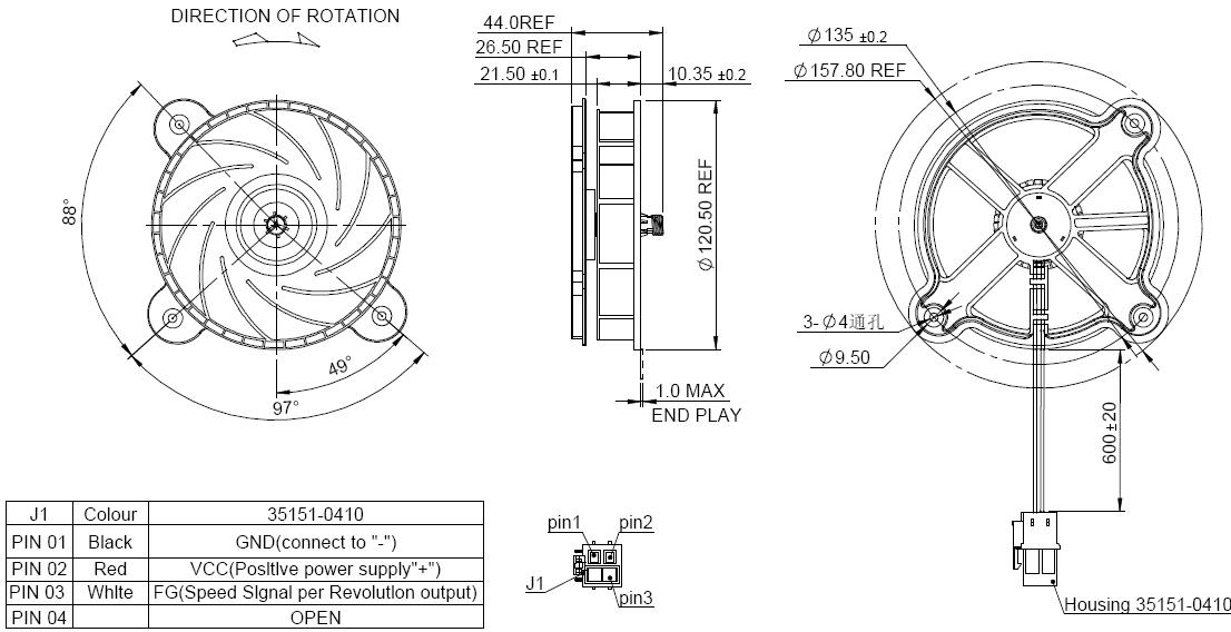 三相无刷直流风扇-专用于电冰箱冷凝风扇 |