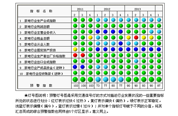 2014年一季度,中经家电产业景气指数为96.8,与去年四季度持平;中经家电产业预警指数为86.7,比去年四季度回落3.3点,仍处于正常稳定的“绿灯区”。