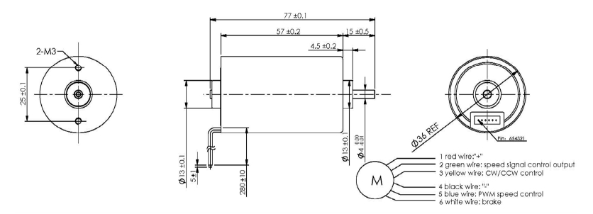 Outline Drawing 外形图: Usable machine screw length 4.0mm max from motor mounting surface Unit: Millimeter