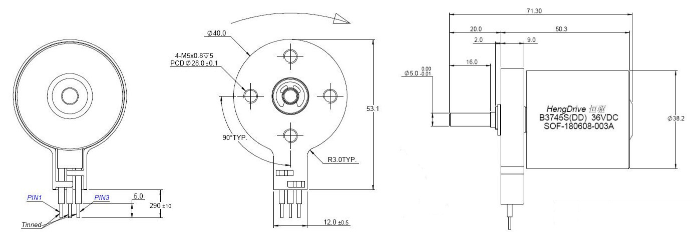 Notice: Data in this typical specification sheet are for other certain customer. Voltage, rated torque, speed, current, power and shaft extension feature & dimension can be changed to meet customer specific requirement. 注意:上述规格仅针对特定客户,电压、扭矩、转速、电流、功率、输出轴的特征和尺寸等都可以按照客户的特殊要求进行调整。 |
